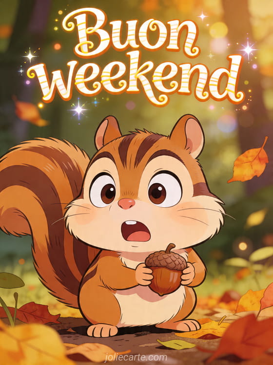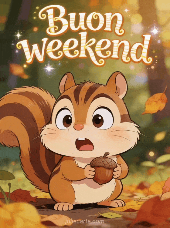 Condividi questo divertente biglietto di buon weekend con uno scoiattolo drammatico, una ghianda e un'espressione super sorpresa. Puoi anche scoprire buon weekend soleggiato umorismo, umorismo buon weekend gif e augurare buon weekend con umorismo.