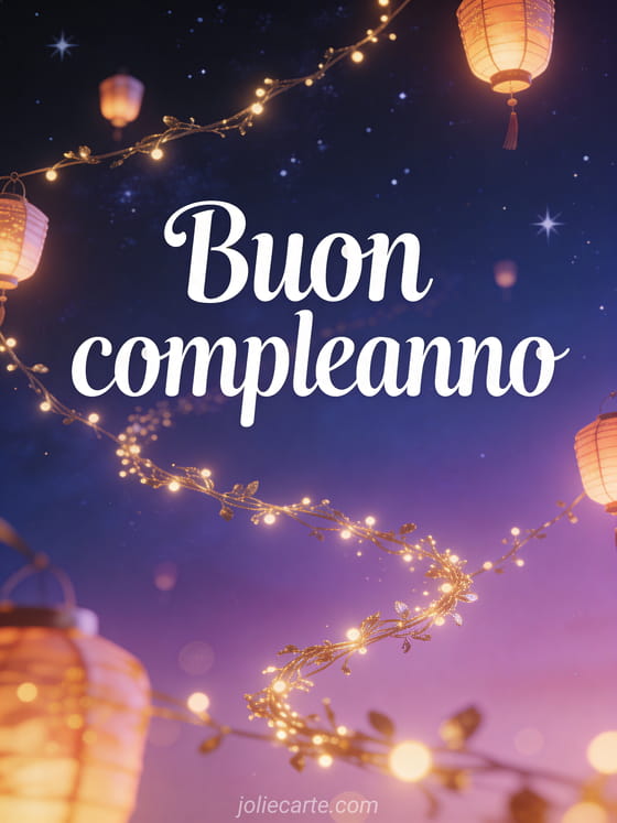 Buon compleanno Un augurio di compleanno magico e caloroso sotto luci notturne.