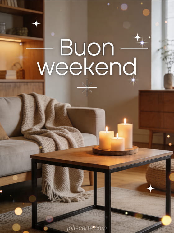 Invia questo biglietto con una frase di buon weekend per augurare giorni accoglienti e rilassanti. Scopri anche smiley buon weekend, cartolina buon fine settimana umorismo o buon fine settimana a voi.