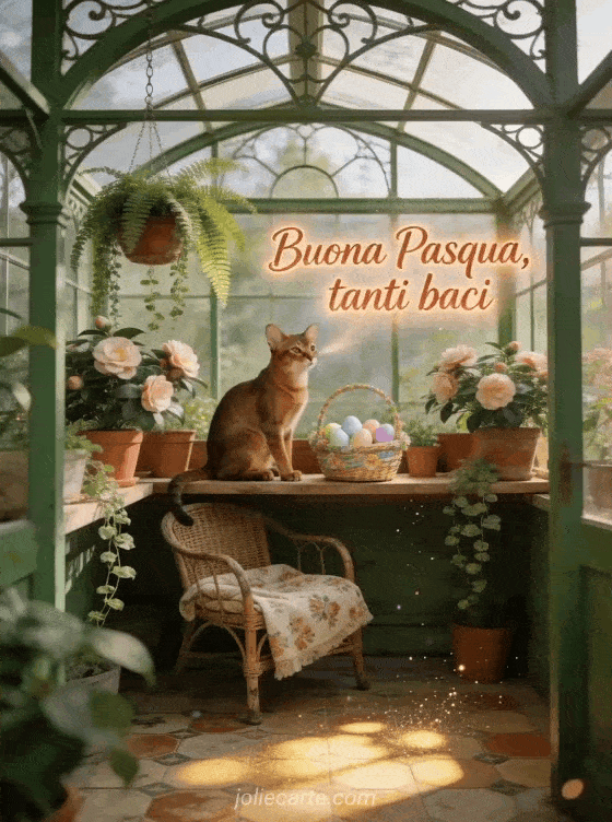 Condividi questo tenero gif di baci di Pasqua con un adorabile gatto abissino e camelie primaverili. Scopri anche buona Pasqua immagine o gif di Pasqua gratis.