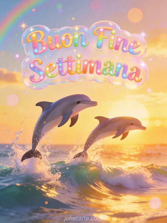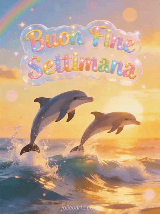 Rallegra il fine settimana di qualcuno con questa cartolina animata con delfini al tramonto. Scopri anche una citazione per augurare un buon fine settimana o una augurare un buon fine settimana con umorismo.