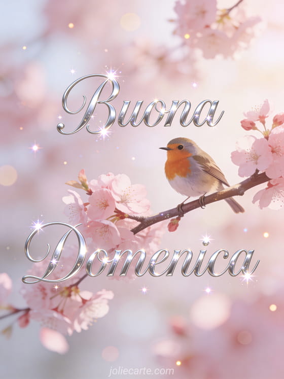Invia un bellissimo saluto di buona domenica con un grazioso uccellino su un ramo di ciliegio in fiore in una mattina primaverile. Un modo incantevole per augurare una meravigliosa domenica. Scopri anche una cartolina buona giornata domenica o una cartolina magica di domenica.