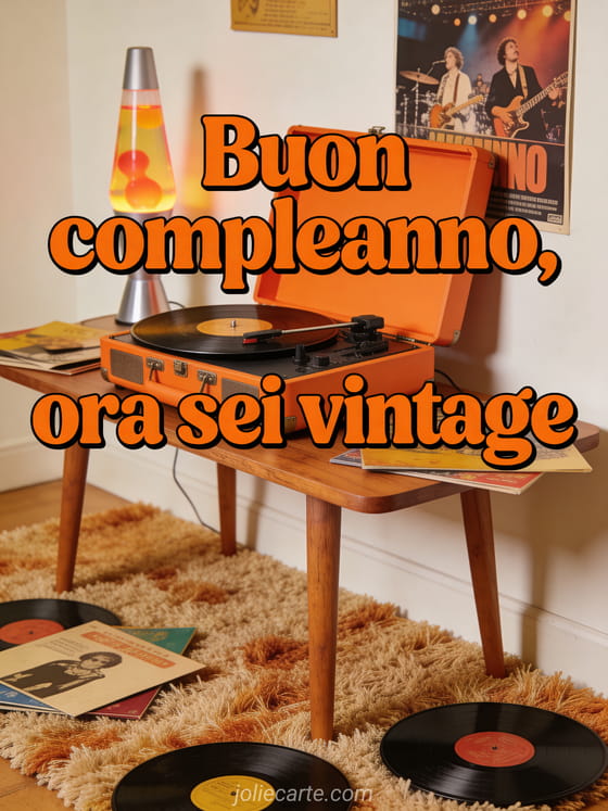Condividi questa cartolina di compleanno retrò con giradischi, vinili e battute sull'età. Scopri anche buon compleanno uomo umorismo gif, bel biglietto compleanno uomo e bel biglietto compleanno uomo gratis dromedario.