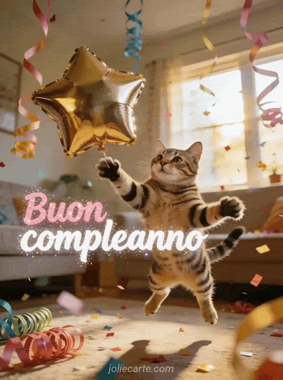 Buon compleanno un augurio di compleanno giocoso e divertente con un gatto che salta