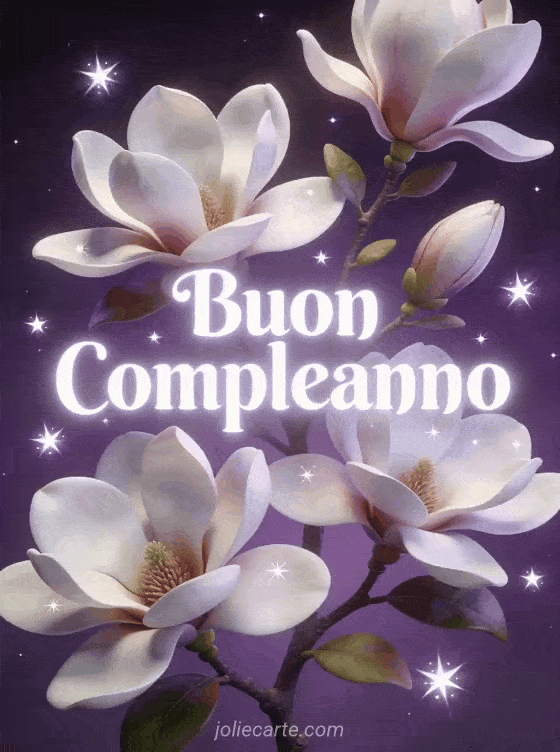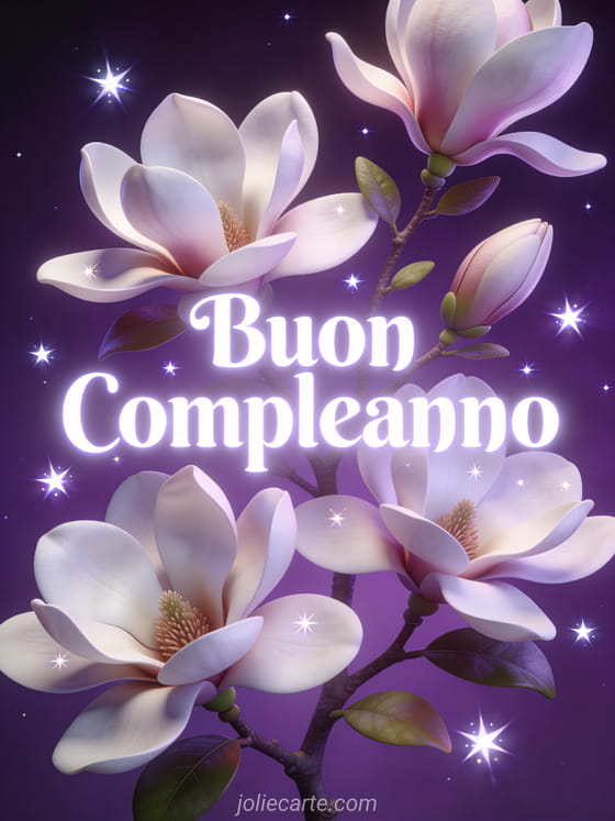 Gif gratis compleanno donna un magico biglietto di compleanno con fiori di magnolia e stelle