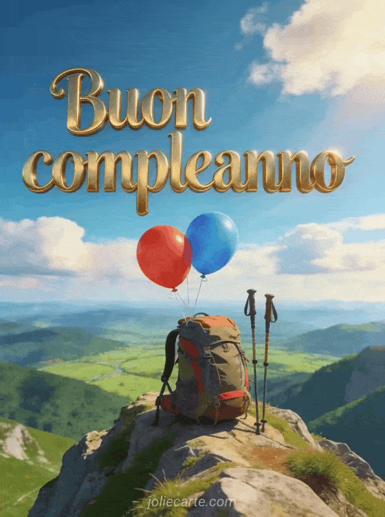 Celebralo con questo gif di compleanno avventuroso con uno zaino sulla cima di una montagna e vista panoramica sulla valle. Scopri anche buon compleanno uomo o immagini buon compleanno uomo umorismo.