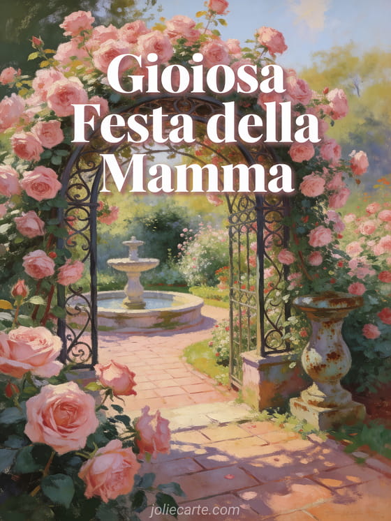 Celebra la Festa della Mamma con un giardino di rose da fiaba nella calda luce del pomeriggio. Scopri anche festa della mamma buona festa della mamma defunta, immagine per augurare buona festa della mamma e poesia festa della mamma per piccolissimi.