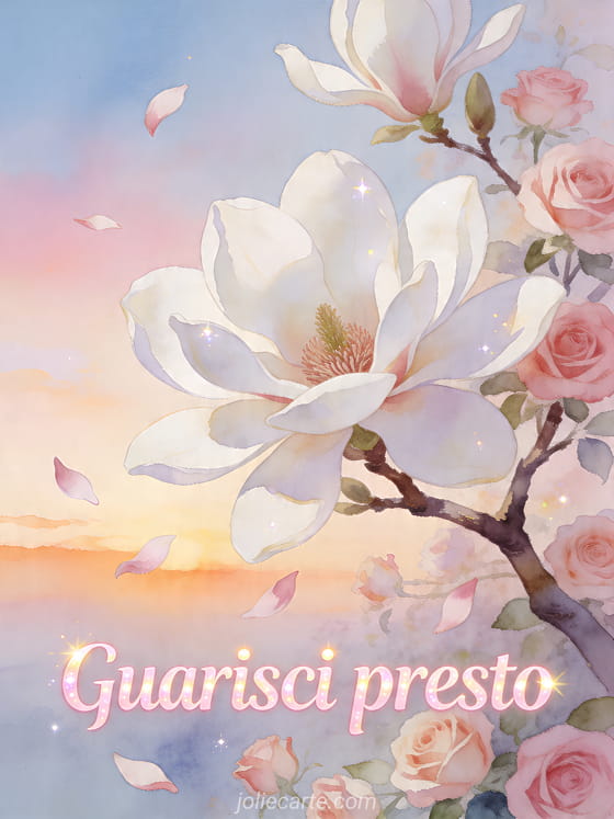 Invia un dolce messaggio di pronta guarigione con questa cartolina gratis per trasmettere affetto, conforto e vicinanza. Puoi scoprire anche una cartolina virtuale pronta guarigione, guarisci presto amore mio messaggi o buona guarigione.