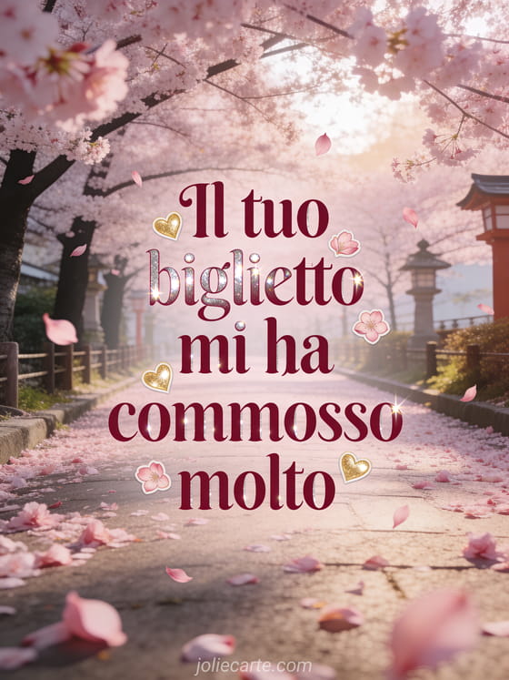 Il tuo biglietto mi ha commosso molto un commovente biglietto di ringraziamento con ciliegi in fiore