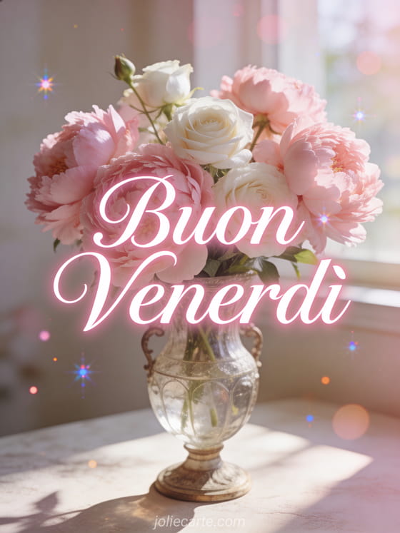 Immagine gratis buon venerdì una romantica e raffinata immagine gratis di buon venerdì con peonie rosa e rose bianche