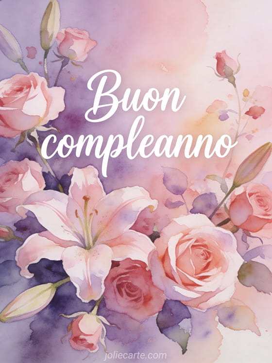 Invia questo delizioso biglietto di compleanno gratis con illustrazioni floreali ad acquerello per celebrare la donna della tua vita. Scopri anche una bella cartolina compleanno donna, una gif animata compleanno donna o un biglietto compleanno donna con cane.