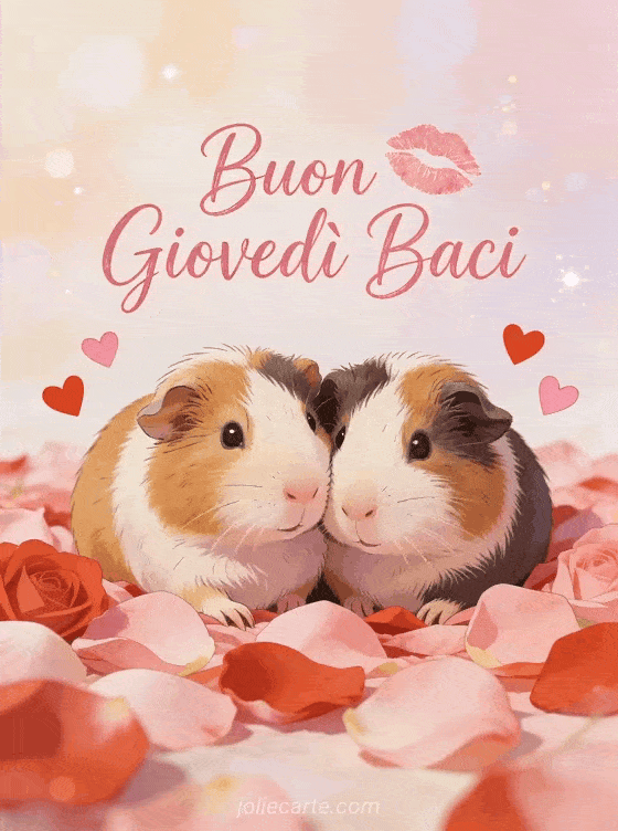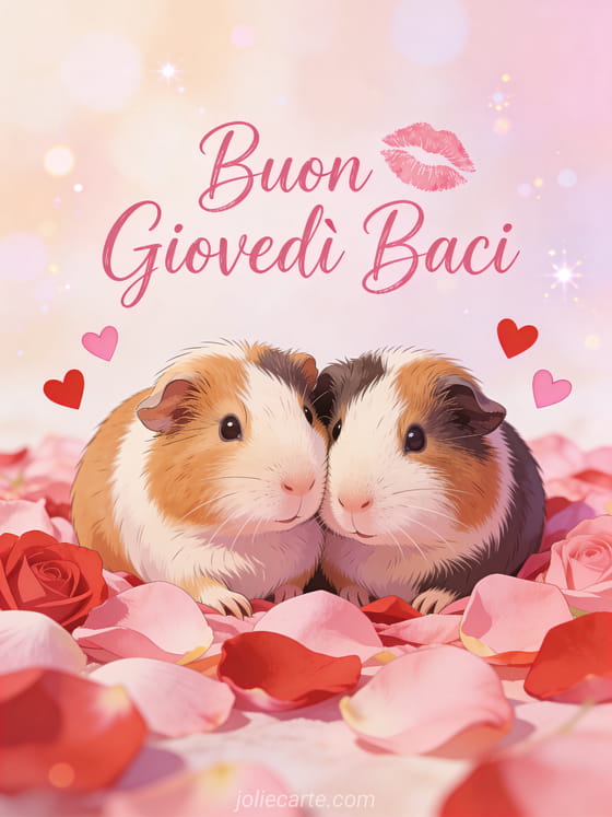 Rallegra il giovedì di qualcuno con questo tenero saluto dei porcellini d'India innamorati. Scopri anche un biglietto buon giovedì freddo o una immagine buon giovedì piovoso.