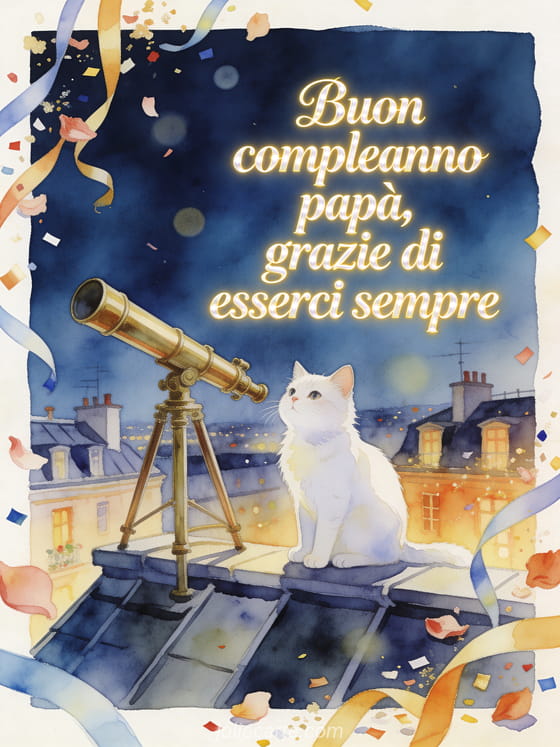Condividi una lettera per il compleanno di papĂ con una scena ad acquerello pensata per ringraziarlo di esserci sempre. Puoi scegliere anche buon compleanno mio papĂ adorato, buon compleanno a papĂ o buon compleanno mio papĂ .