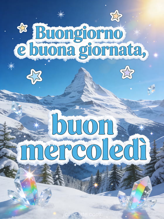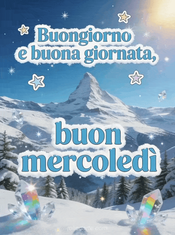Augura a qualcuno un buongiorno e un bel mercoledì con questa splendida cartolina di ispirazione alpina. Scopri anche buon mercoledì e buona giornata gif o un messaggio buon mercoledì per altri allegri saluti del mercoledì.