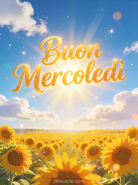 Illumina il mercoledì di qualcuno con questa radiosa cartolina del campo di girasoli. Scopri anche una cartolina buon mercoledì gennaio o una cartolina buon mercoledì.