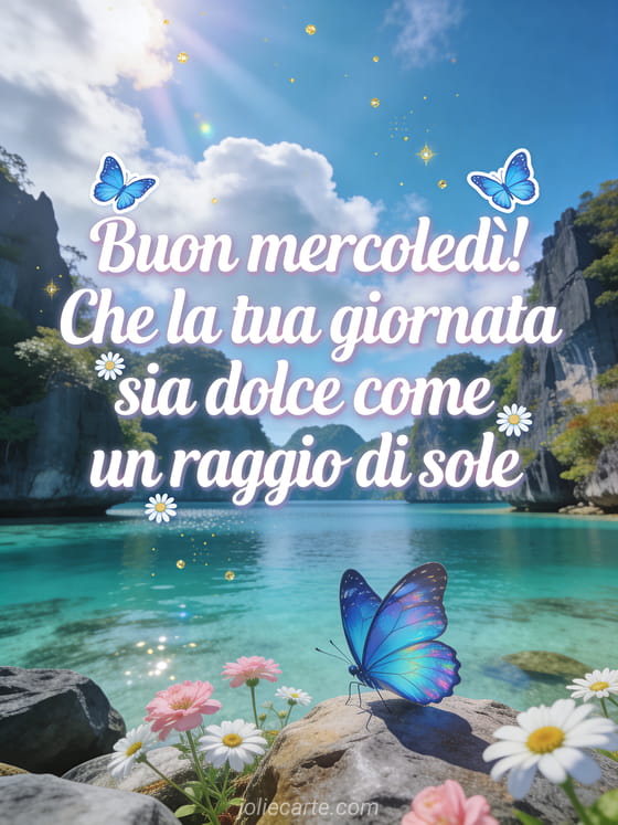 Invia questo messaggio di buon mercoledì per augurare una giornata piena di sole. Scopri anche una immagine di buon mercoledì e buona giornata o una immagine buon mercoledì soleggiato cartolina.