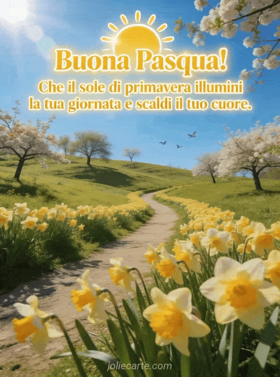 Buona Pasqua! Che il sole di primavera illumini la tua giornata un augurio radioso di Pasqua pieno di calore primaverile
