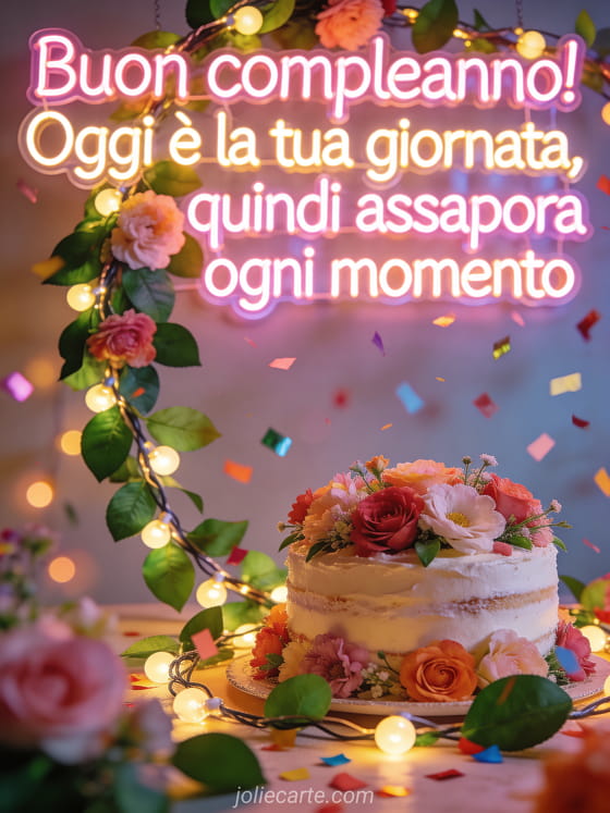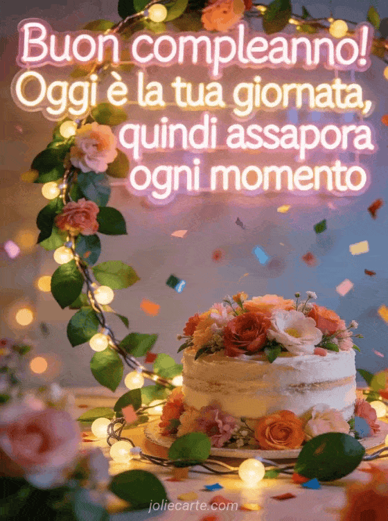 Festeggia il giorno speciale di qualcuno con questo allegro augurio di compleanno che invita ad assaporare ogni momento. Scopri anche un biglietto di compleanno buonumore o un biglietto di compleanno.