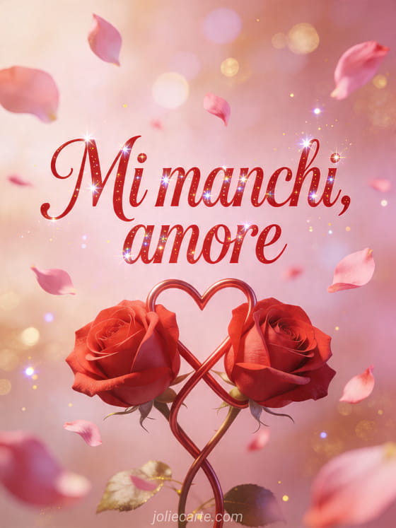 Condividi la tua nostalgia con questo biglietto romantico e appassionato fatto di rose intrecciate. Scopri anche mi manchi tantissimo, citazione divertente mi manchi o mi manchi da morire.