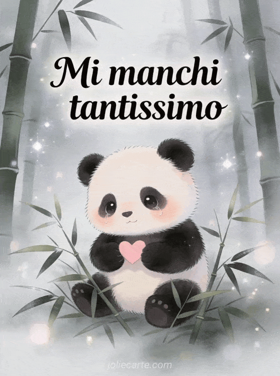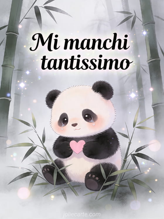 Condividi la tua nostalgia con questo biglietto tenero e carino con un panda. Scopri anche citazione divertente mi manchi, citazione mi manchi amore mio o poesia mi manchi tanto amore mio.