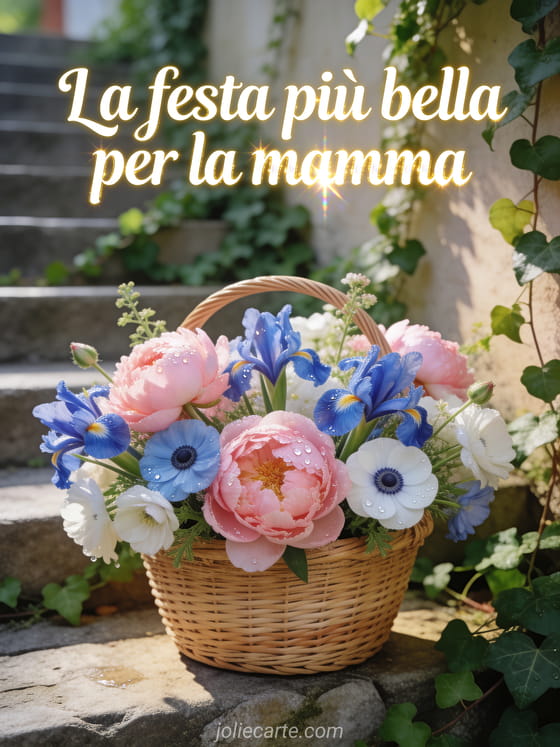 Festeggia la mamma con questo splendido biglietto fotorealistico con un cesto di fiori del giardino alla luce del mattino. Scopri anche un pinterest biglietto festa della mamma o un biglietto festa della mamma.