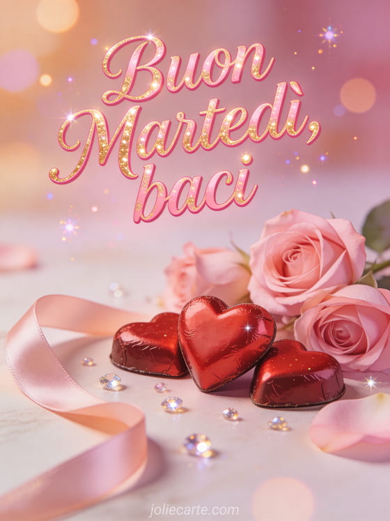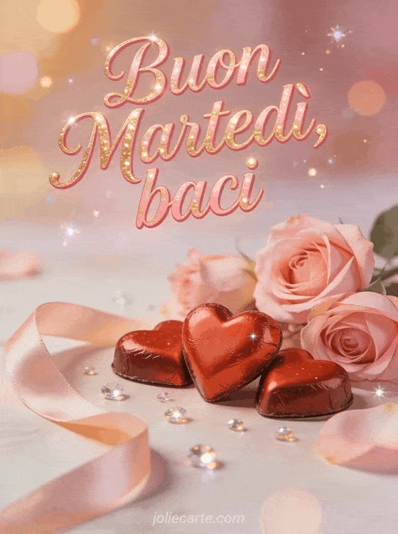 Ottimo martedì baci una tenera e romantica cartolina di ottimo martedì con baci, rose e cioccolatini