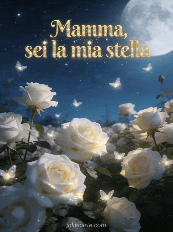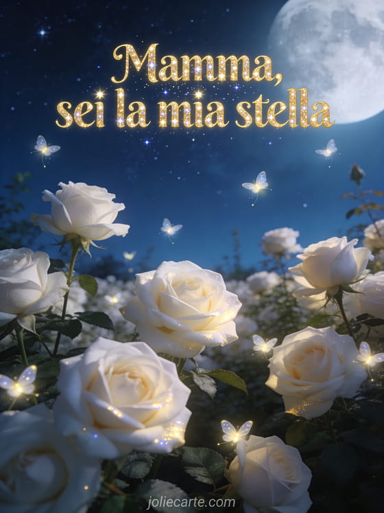 Condividi un messaggio romantico per la mamma con cielo stellato, rose bianche e luce lunare. Scopri anche poesia festa della mamma lunga, poster festa della mamma gratis e messaggio per augurare buona festa della mamma.