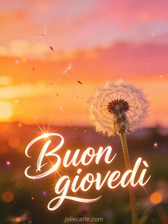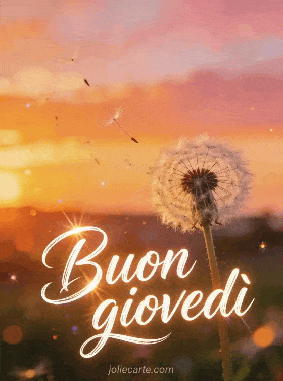 Condividi una citazione di pensiero positivo per buon giovedì con un soffione luminoso che lascia volare i semi nel cielo del tramonto. Invia altra ispirazione con buona giornata di giovedì immagini, buon giovedì immagini con rose o buongiorno buon giovedì gif.