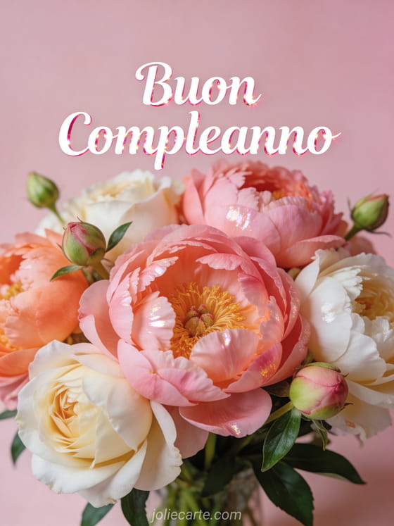 Festeggia il suo compleanno con questo splendido biglietto che presenta un lussuoso mazzo di peonie in tonalità rosa, corallo e bianco crema con delicati boccioli e fogliame verde su sfondo rosa pallido. Scopri anche un buon compleanno mazzo di fiori donna o un compleanno donna fiori.
