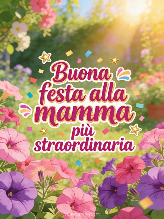 Sorprendi la mamma più straordinaria con questo vivace biglietto pinterest per la festa della mamma con petunie in fiore. Scopri anche un biglietto festa della mamma o un festa della mamma gif.