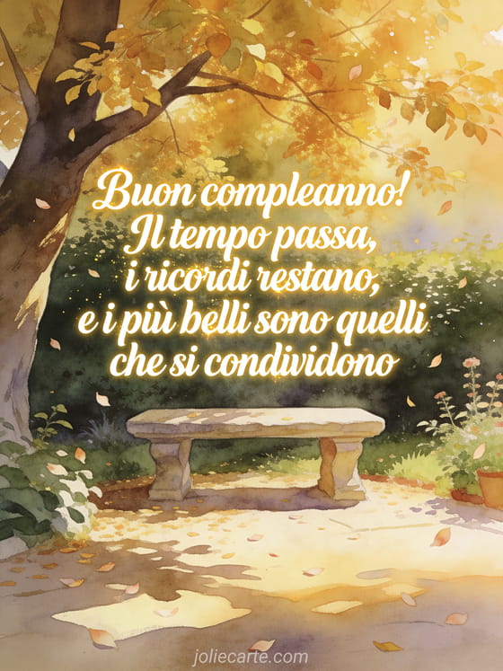 Invia una bellissima breve poesia di compleanno con un'illustrazione di giardino autunnale dorato. Scopri anche una cartolina breve augurio di compleanno o una cartolina frase breve di compleanno.