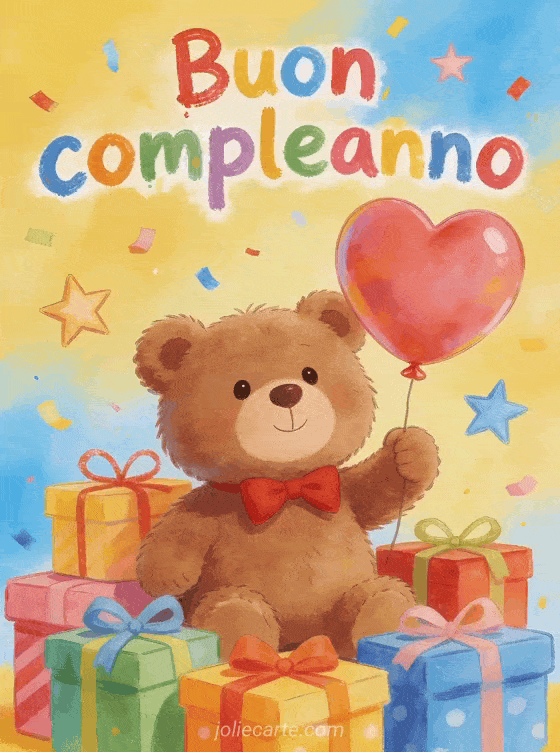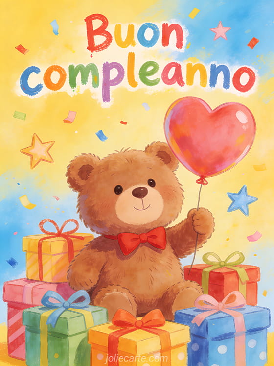 Condividi un biglietto poesia di compleanno papĂ bambino con lettere colorate dipinte, un orsacchiotto marrone con fiocco rosso, un palloncino a cuore, regali incartati, stelle e coriandoli. Scopri anche un buon compleanno papĂ gif, un buon compleanno papĂ biglietto virtuale o un buon compleanno papĂ biglietto.
