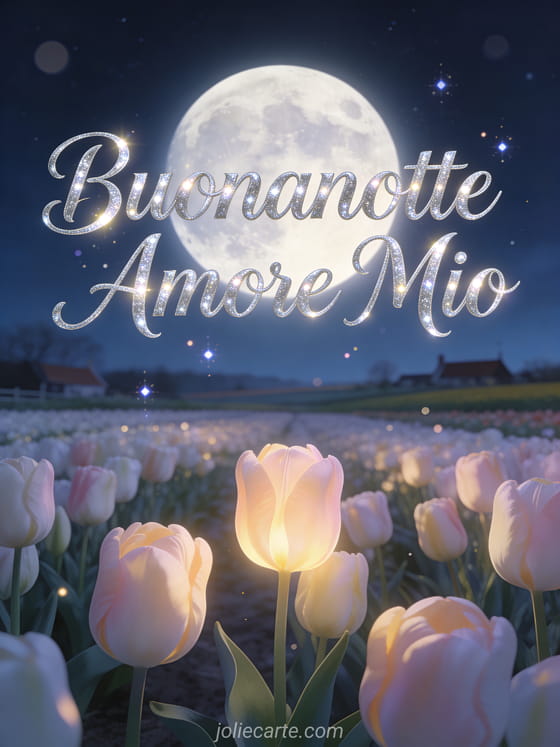 Buonanotte Amore Mio una romantica cartolina della buonanotte con tulipani al chiaro di luna