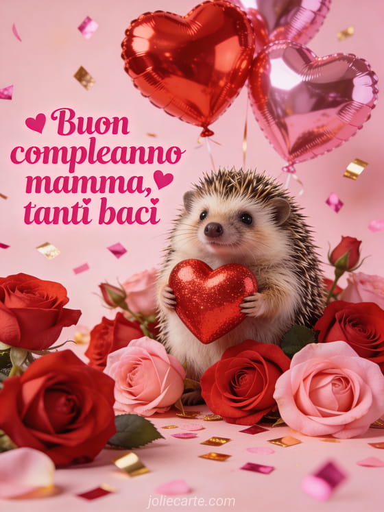 Invia un caloroso buon compleanno alla tua mamma con tanti baci e tanto amore. Rallegra il suo giorno speciale con questo adorabile biglietto. Scopri anche un buon compleanno mamma con fiori, un biglietto di auguri compleanno per mamma o un biglietto compleanno mamma.