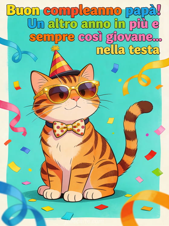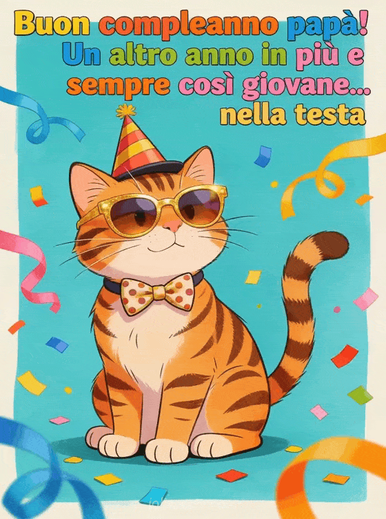 Fai ridere il tuo papà con un testo di compleanno umoristico pieno di affetto e allegria. Scopri anche un gif buon compleanno papà, un biglietto buon compleanno papà padre o un biglietto buon compleanno papà.