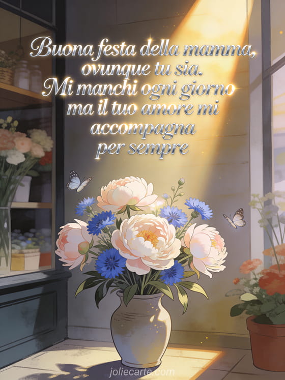Invia questo ricordo affettuoso per onorare la mamma con amore e luce. Scopri anche poesia d'amore per festa della mamma, disegno festa della mamma a colori o bouquet mamma festa.