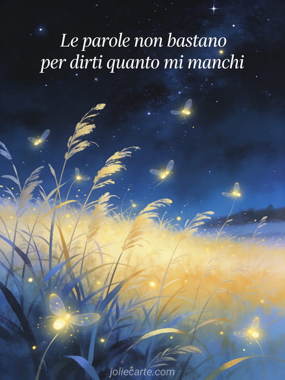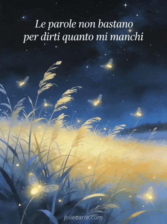 Invia questa cartolina magica e poetica per far sapere a qualcuno quanto ti manca. Scopri anche una cartolina mi manchi ti amo o una poesia mi manchi amore mio.