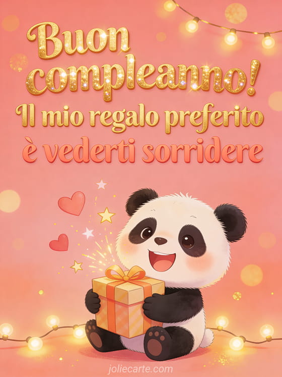 Condividi questo biglietto per bambini con panda tenero e stile festoso. Scopri anche biglietto compleanno musicale bambino, confezionare biglietto compleanno bambino e biglietto compleanno bambino animato.