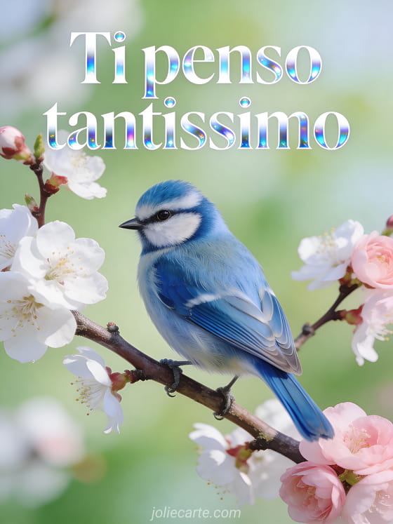 Fai sapere a qualcuno quanto è importante per te con questo poetico biglietto con una cinciarella su un ramo di pruno in fiore. Scopri anche un biglietto animato penso a te o un biglietto penso a te.
