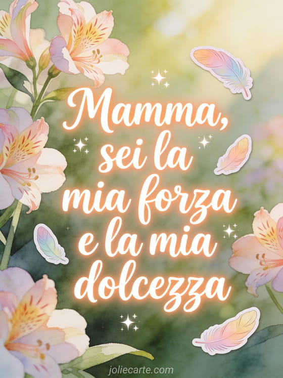 un biglietto per la festa della mamma Mamma, sei la mia forza e la mia dolcezza.