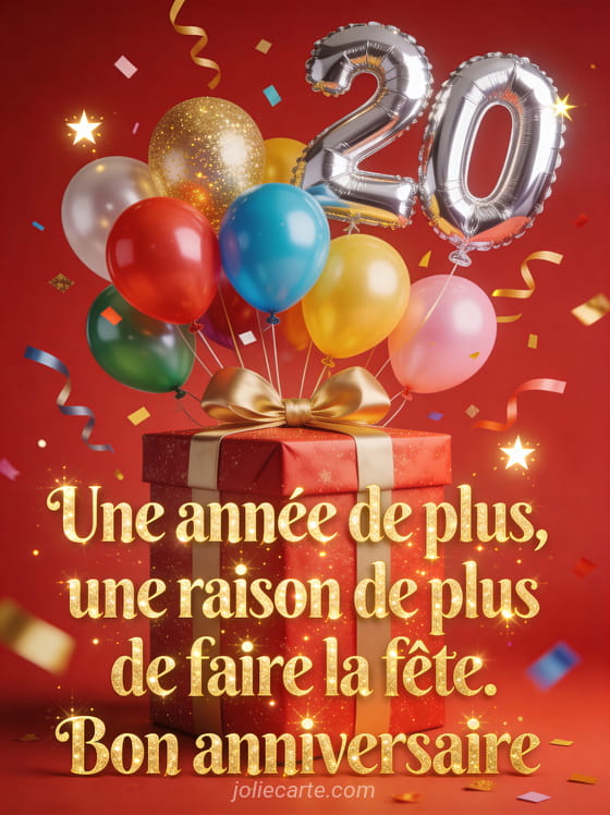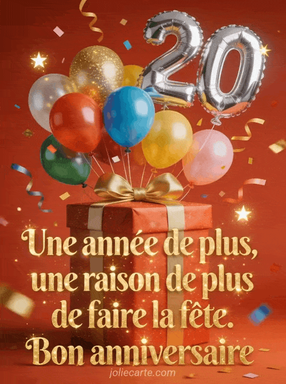 Joyeux anniversaire 20 ans - Phrase Un an de plus, encore plus de raisons de sourire. Bon anniversaire Joyeux anniversaire 20 ans - Carte humoristique Joyeux anniversaire 20 ans l'âge parfait Joyeux anniversaire 20 ans - Carte gratuite Joyeux anniversaire Joyeux anniversaire 20 ans - Carte gratuite telecharger Joyeux anniversaire