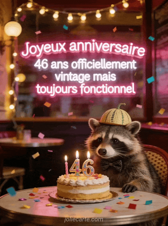 Joyeux anniversaire 46 ans officiellement vintage mais toujours fonctionnel - GIF Télécharger le GIF animé Joyeux anniversaire 46 ans officiellement vintage mais toujours fonctionnel - Image Télécharger l'image