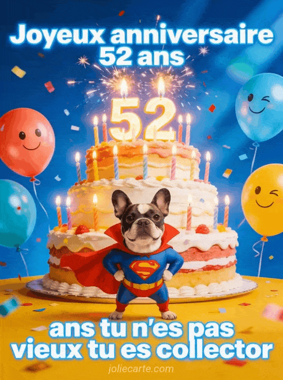 Joyeux anniversaire 52 ans tu n'es pas vieux tu es collector - GIF Télécharger le GIF animé Joyeux anniversaire 52 ans tu n'es pas vieux tu es collector - Image Télécharger l'image