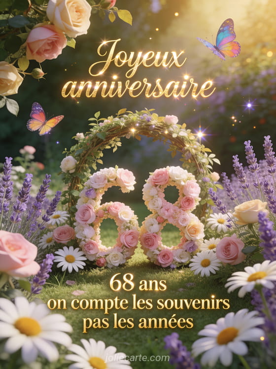 Image papa 68 ans · Texte maman 68 ans · Jolie carte femme 68 ans