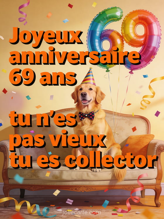 Joyeux anniversaire 69 ans - Texte humour Joyeux anniversaire, 69 ans et toujours aussi jeune dans sa tête Joyeux anniversaire 69 ans - Humour Joyeux anniversaire 69 ans et pas une ride… enfin presque Joyeux anniversaire 69 ans - Homme Joyeux anniversaire Joyeux anniversaire 69 ans - Texte pour Joyeux anniversaire à 69 ans on ne vieillit pas on prend de la valeur