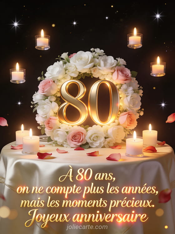 À 80 ans, on ne compte plus les années, mais les moments précieux. Joyeux anniversaire - GIF Télécharger le GIF animé À 80 ans, on ne compte plus les années, mais les moments précieux. Joyeux anniversaire - Image Télécharger l'image
