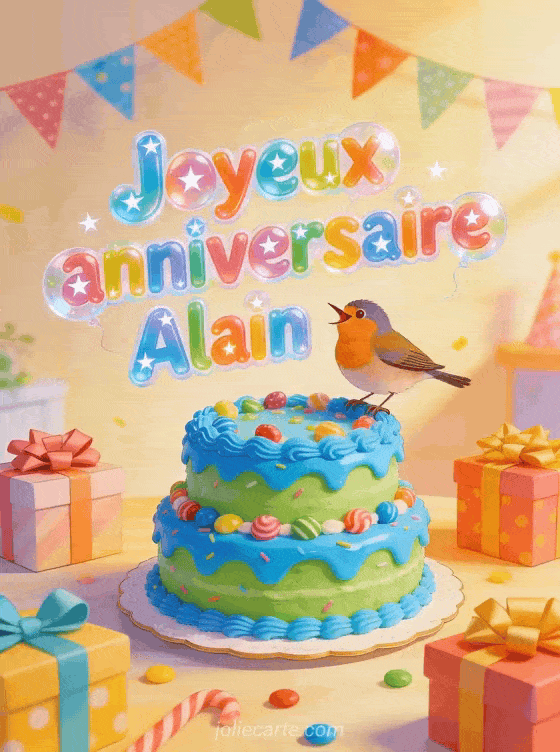 Bon anniversaire Alain carte · Bon anniversaire Alain carte gratuite · Bon anniversaire Alain chat · Bon anniversaire Alain gif anime · Bon anniversaire Alain gros bisous