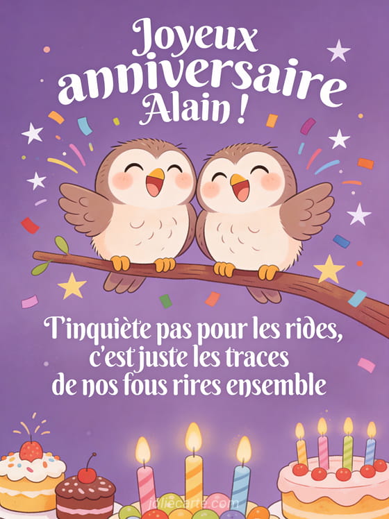 Télécharger l'image joyeux anniversaire Alain ! T'inquiÚte pas pour les rides, c'est juste les traces de nos fous rires ensemble