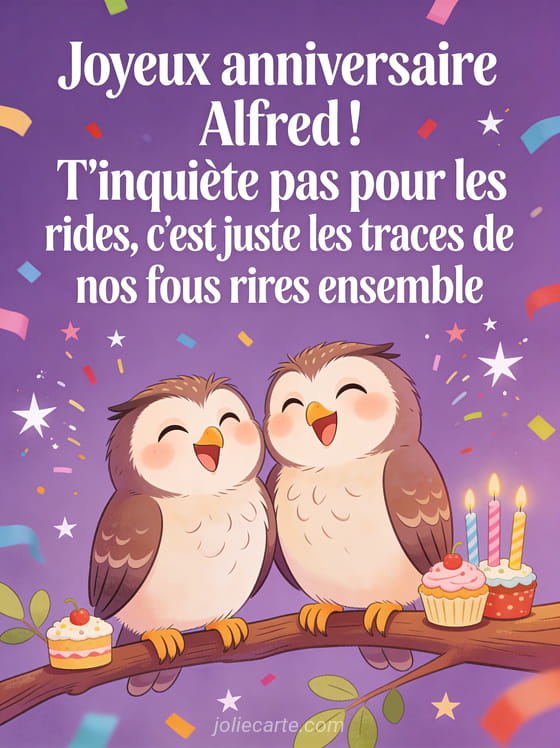 Télécharger l'image joyeux anniversaire Alfred ! T'inquiète pas pour les rides, c'est juste les traces de nos fous rires ensemble