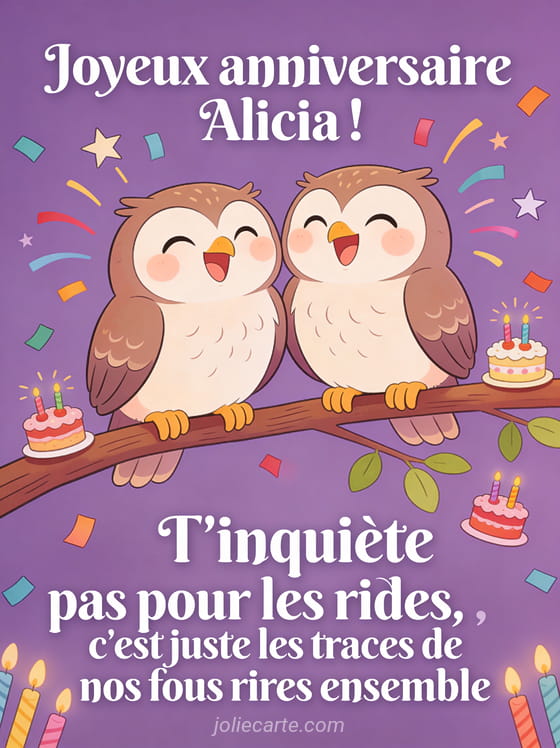 Télécharger l'image joyeux anniversaire Alicia ! T'inquiète pas pour les rides, c'est juste les traces de nos fous rires ensemble